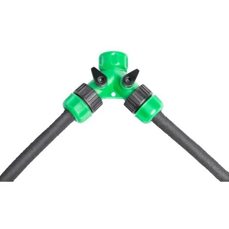 Distributeur d’eau à 2 voies avec 2 vannes d’arrêt réglables pour une régulation en continu de la pression de l’eau et donc de l’intensité des gouttelettes.