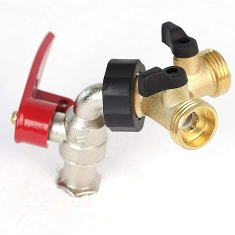 Distributeur en Y avec un filetage intérieur de 3/4 pouce (environ 24,2 mm) et deux filetages mâles de 3/4 pouce (environ 26,4 mm) pour raccorder deux tuyaux d’arrivée d’eau.