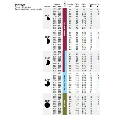 Qui plus est, après réglage de la section et de la portée, chaque MP Rotator offre une pluviométrie parfaitement proportionnelle