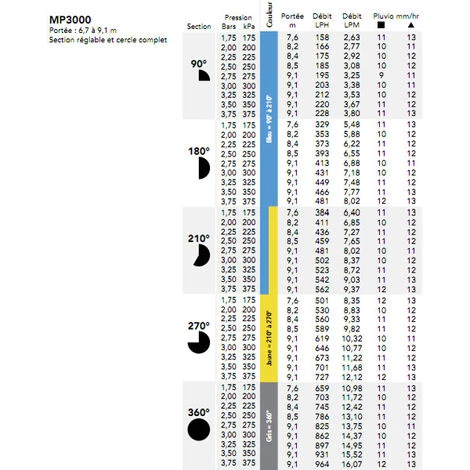 Qui plus est, après réglage de la section et de la portée, chaque MP Rotator offre une pluviométrie parfaitement proportionnelle