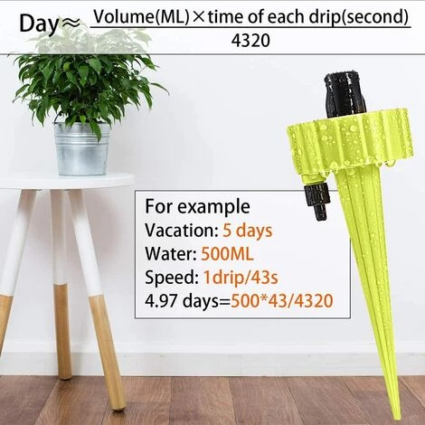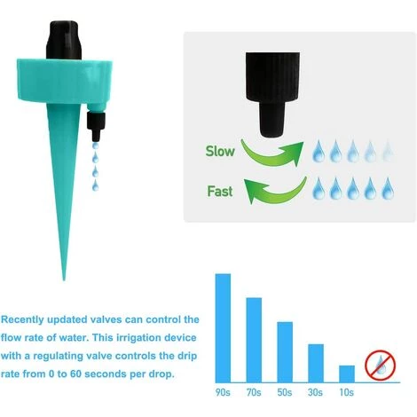 Contrôle du débit commandable: Contrairement aux autres versions, la vanne récemment mise à niveau contrôle le débit d’eau. Le dispositif d’arrosage de la plante avec vanne de régulation permet de contrôler la vitesse de goutte à goutte de 0 à 60 s / goutte à goutte, et le goutte à goutte à libération continue dure 1 à 15 jours.