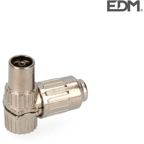 Fiche femelle tv coudée métallique 9,5mm edm sous emballage.