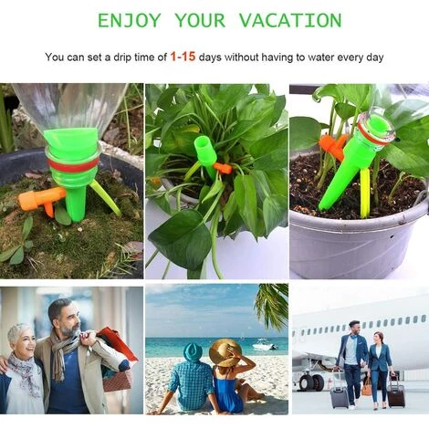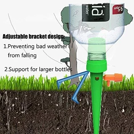Description du Produit: Les pointes d’arrosage automatiques des plantes éliminent le besoin de s’inquiéter du fait que vos plantes soient laissées sans surveillance pendant de longues périodes. Cet appareil intelligent peut être facilement fixé à n’importe quelle bouteille à bouchon à vis et fournit de l’eau directement aux racines de la plante, ce qui convient à la plupart des plantes.Fonctionnalités: La pression de l’eau n’est pas affectée par le niveau d’eau descendu Des vannes améliorées contrôlent la vitesse d’écoulement Pas besoin de couper les bouteilles ou de percer un trou Plastique ABS durable pour une utilisation durable Utilisé pour le jardin extérieur intérieur, les plantes en pot, les plantes d’intérieur, les herbes, etc. Vous n’êtes plus limité à trouver des bouteilles de 1 pouce de diamètre intérieur. Ce nouveau dispositif d’arrosage automatique convient à presque toutes les bouteilles de soda et de vin.Comment Utiliser? 1. Serrez le support 2.Mettez la valeur de régulation dans les dispositifs d’arrosage 3.Mettez la bouteille sur des pointes 4. Retournez la bouteille et placez-la dans le sol, réglez les débits d’eau. (Pas besoin d’outils pendant le processus d’installation.)