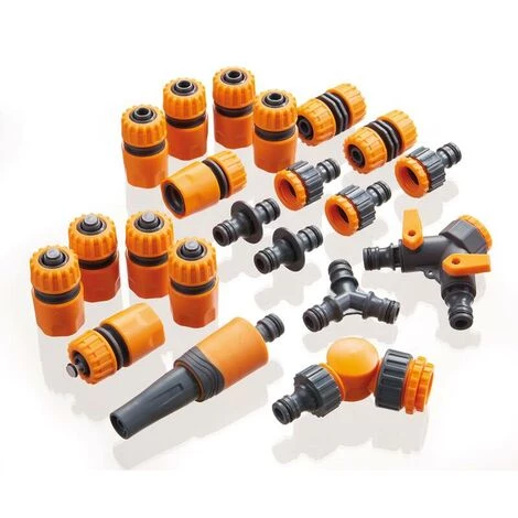 Cela vous est-il déjà arrivé : vous avez maintenant un besoin urgent d’eau à un endroit, qui est cependant un peu plus éloigné du robinet ? Ou bien le tuyau d’arrosage est défectueux et doit être réparé ? Avec ce set d’arrosage XXL pratique, vous avez la bonne solution pour chaque problème ! Peu importe ce qui vous manque dans le set MEGA-Watering, vous le trouverez. Pièces de robinet, réducteurs, pièces de tuyau avec et sans arrêt d’eau – fonction et bien plus encore ! Cet ensemble appartient à chaque ménage !