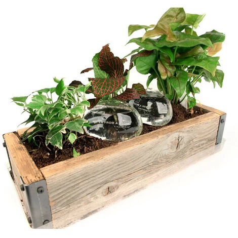 2 petits globes en verres à remplir et poser sur la terre à côté de vos plantes bouchon en bas.