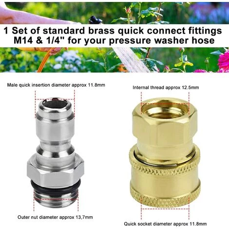 【Jeu de raccords rapides universels】: Notre adaptateur de raccordement de tuyau peut être divisé en 2 parties avec filetage, dont 1 prise intérieure métrique M14 + 1 prise plate extérieure M14. Lorsque les 2 parties sont combinées, l’adaptateur s’adapte sur un pistolet de pulvérisation de robinet.