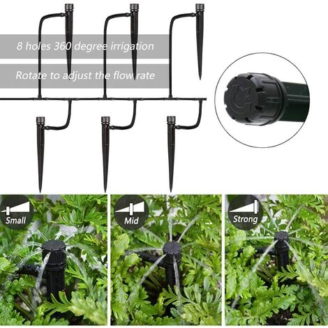 la zone d’irrigation – Les 8 alésages de sortie en haut de chaque peloteur peuvent fournir un couvercle de 360 degrés, le diamètre du cercle est de 0 à 50 cm / 0-20 pouve, le goutte convient aux tuyaux : Diamètre intérieur 4mm, diamètre extérieur 7 mm.